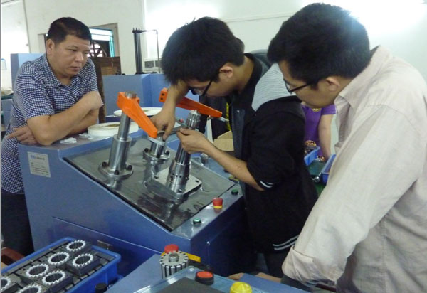 今天開始樂普達的培訓(xùn)。樂普達電機公司在二月底向本公司購買了兩組嵌線設(shè)備,包括電機嵌線機、電機綁線機、電機槽紙機、電機槽片機、電機初整形機和電機終整形機。前天已經(jīng)生產(chǎn)和調(diào)試完畢,現(xiàn)在已經(jīng)運往樂普達電機公司其車間進行試產(chǎn)。圖為本公司技術(shù)人員正在為客戶解說設(shè)備的操作和應(yīng)注意事項。