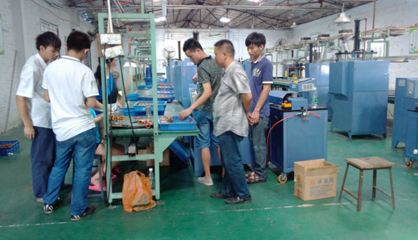 在今年的6月份開始,該客戶就向本公司寄來了幾十個(gè)定子做試驗(yàn)規(guī)格為16槽71*44.5定子,線徑為 鋁線0.15,試驗(yàn)的定子落線很成功以至該客戶對(duì)本公司的設(shè)備信心增加不少,所以隨后向本公司申請多做 幾百個(gè)定子落線并派人員過來參與和學(xué)習(xí),目的是真實(shí)的了解使用設(shè)備生產(chǎn)的難度。于7月11日該客戶派了 技術(shù)人員與生產(chǎn)員工過來再次考察與培訓(xùn),學(xué)習(xí)的時(shí)間不到一小時(shí),員工們都已能上手操作,客戶看了后 對(duì)本公司技術(shù)人員的說,這嵌線設(shè)備操作起來真的并不像想像的那么難嘛。屆時(shí)對(duì)本公司的設(shè)備生產(chǎn)提高了 很大的信心。